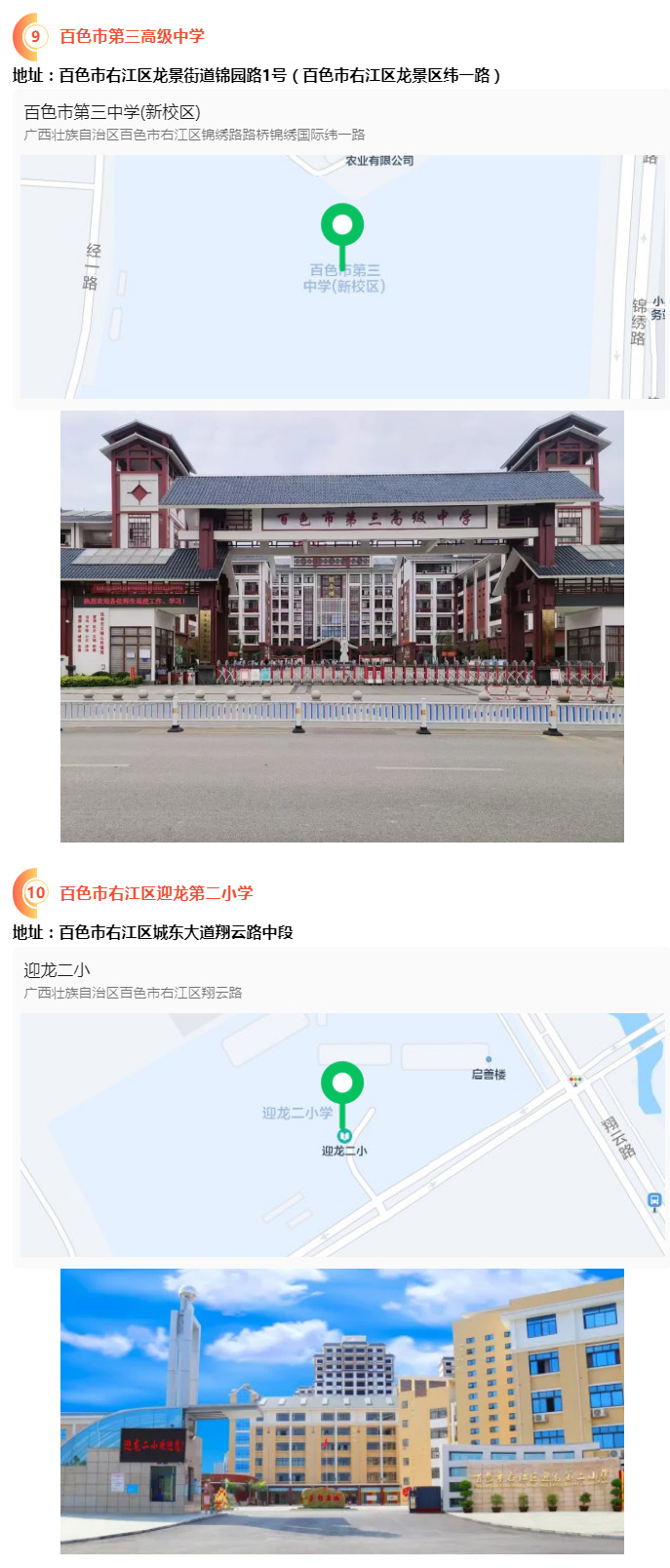 2.請?zhí)崆笆煜た键c地址,做好路線、住宿的安排。本次考試參考人數(shù)較多,考點分布分散,建議考生考前實地察看考點,確認考點入口位置,防止走錯考點。請充分考慮考點周邊交通通行情況和停車場地容量,合理安排出行方式,預留充足時間,確保考試當天按時到達。另外,考試期間百色市及各考點學校周邊的住宿比較緊張,請?zhí)崆邦A定。