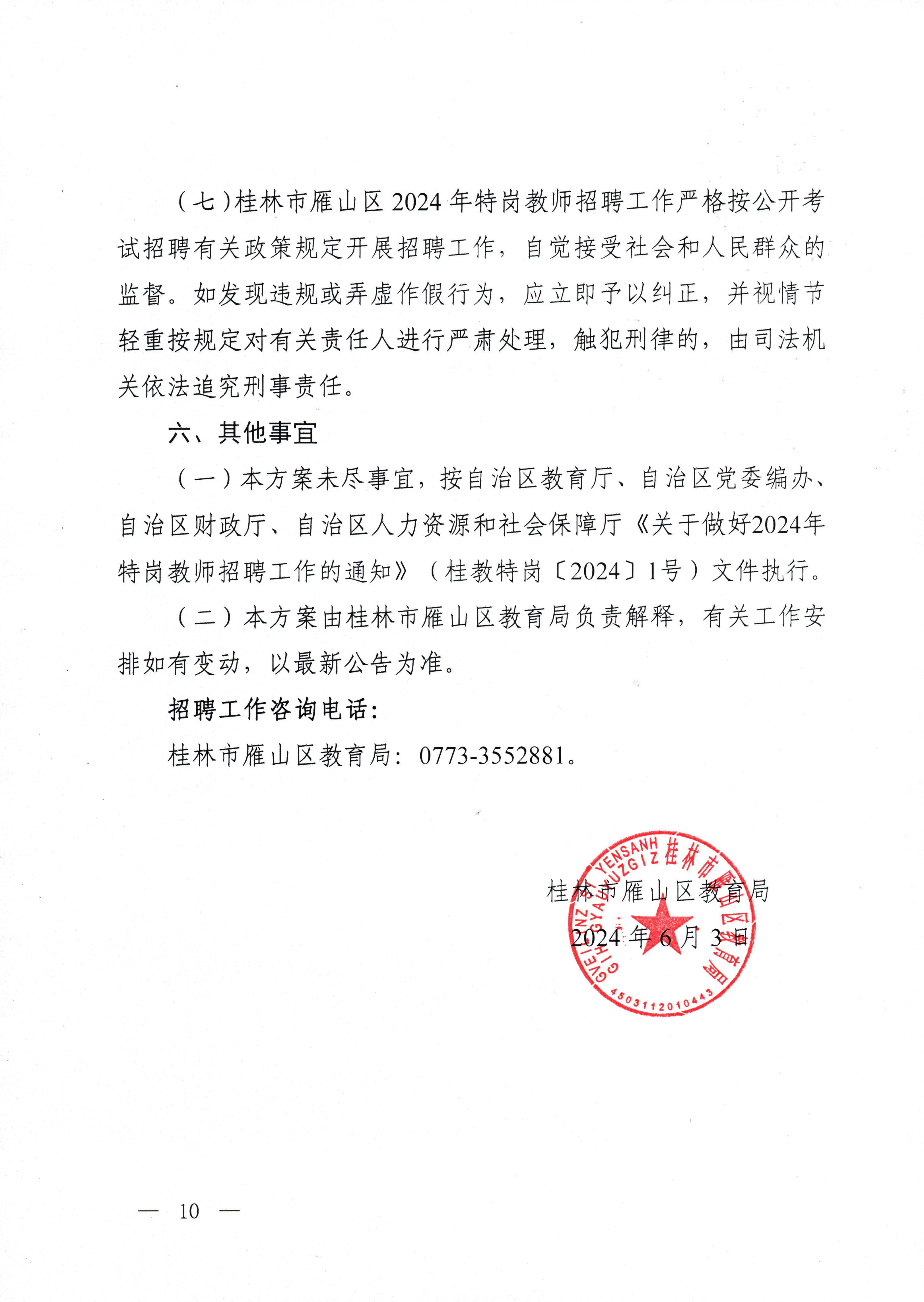 【教育局公告】桂林市雁山區(qū)2024年特崗教師招聘公告