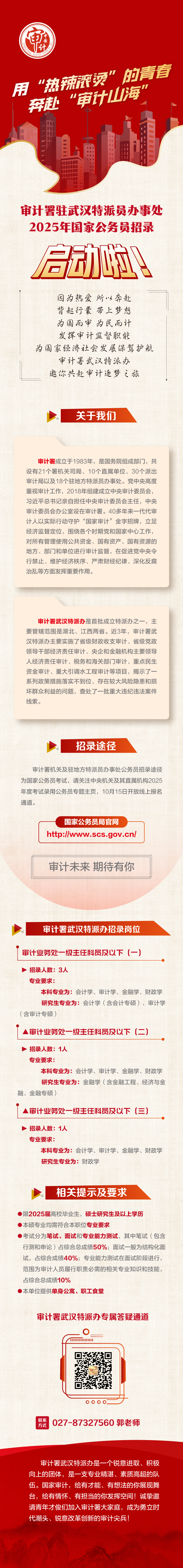 審計(jì)署駐武漢特派員辦事處2025年國(guó)家公務(wù)員招錄啟動(dòng)!