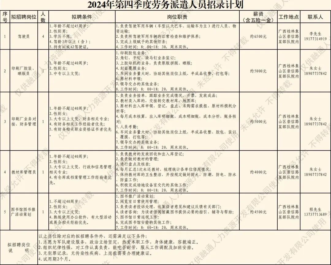 (五)公示錄用擬聘人員名單將在融通人力公司公眾號(hào)進(jìn)行公示,公示期為5個(gè)工作日。公示無(wú)異議或者反映問(wèn)題不影響聘用的擬聘人員,與融通人力資源開發(fā)有限公司簽訂勞務(wù)派遣勞動(dòng)合同,辦理入職相關(guān)手續(xù)。