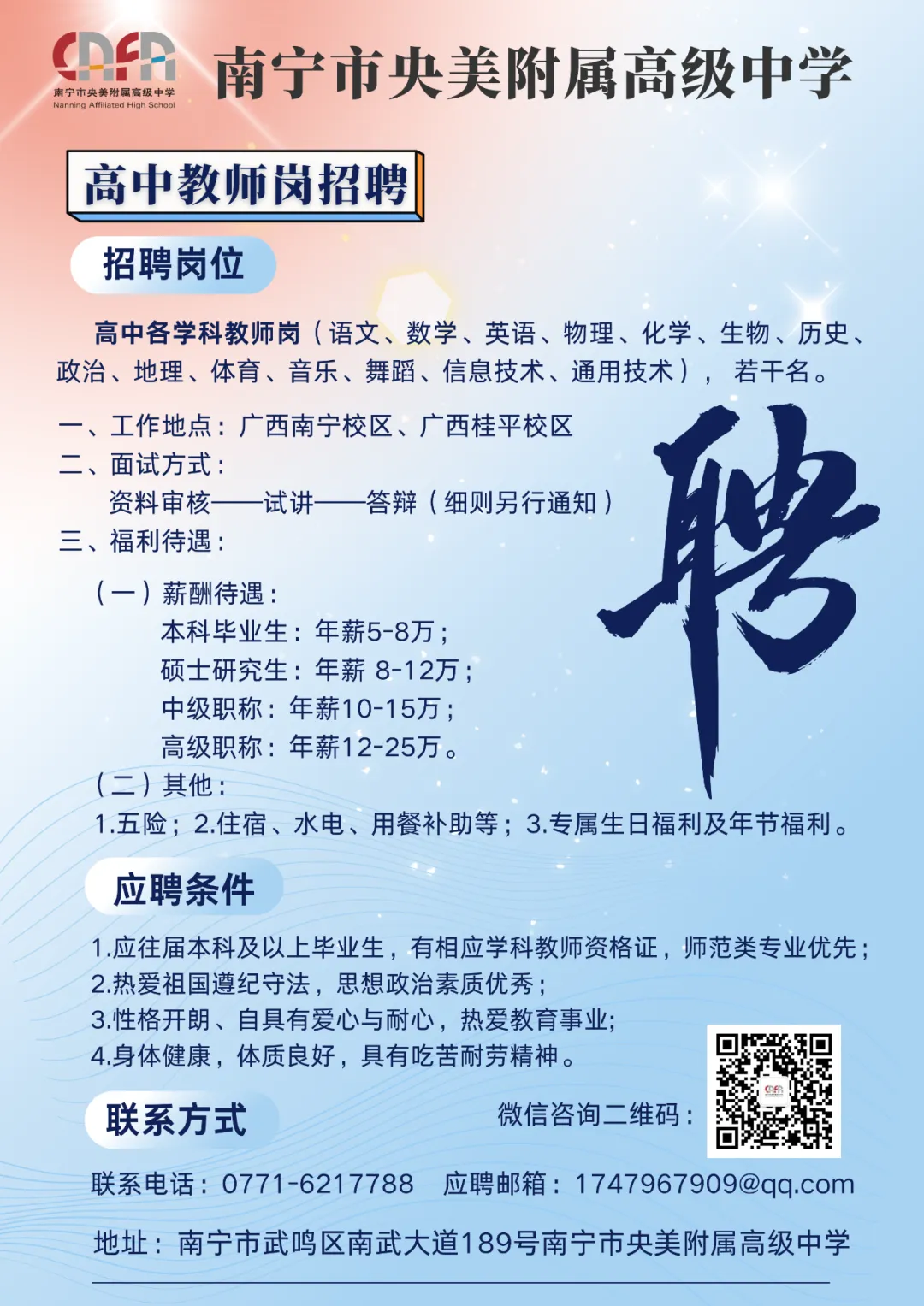 2025年南寧市央美附屬高級(jí)中學(xué)教師招聘公告