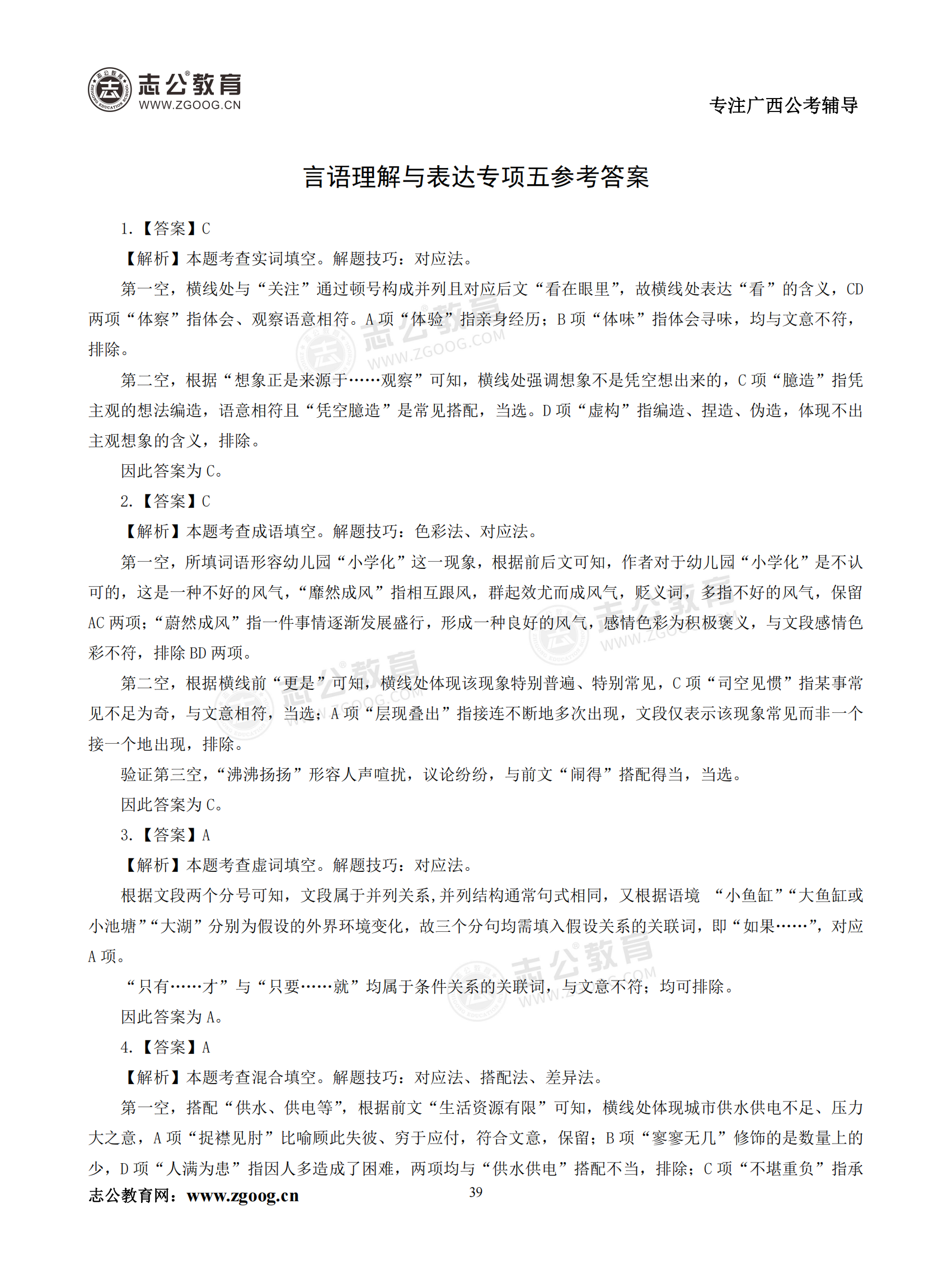 【公考模塊練習(xí)】言語理解題五(答案)