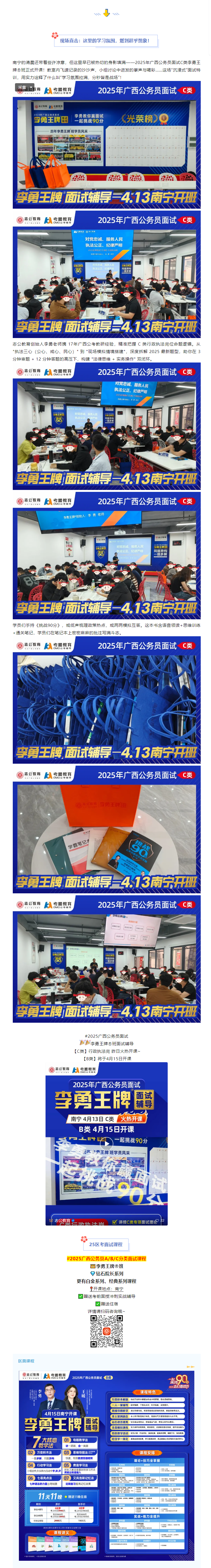 2025年廣西公務(wù)員面試戰(zhàn)役已打響!想在C類崗位面試中一舉奪魁?4月13日,南寧考生翹首以盼的 【李勇王牌®班面試輔導(dǎo)C類課程】 火熱開課!這里沒有枯燥的理論堆砌,只有 “全員沉浸、全程高能” 的實(shí)戰(zhàn)練兵場,助你挑戰(zhàn)面試90分!