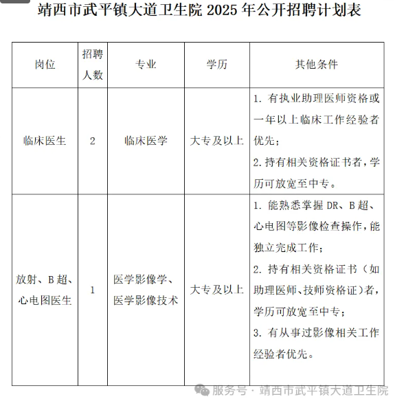 2025年百色靖西市武平鎮(zhèn)大道衛(wèi)生院公開(kāi)招聘臨床醫(yī)生、影像專業(yè)技術(shù)人員3人