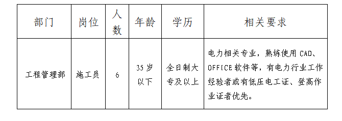 要求服務(wù)意識強,辦事穩(wěn)重,作風(fēng)扎實,服從工作安排、身體健康,具備崗位專業(yè)要求。具體招聘崗位及招聘條件如下表: