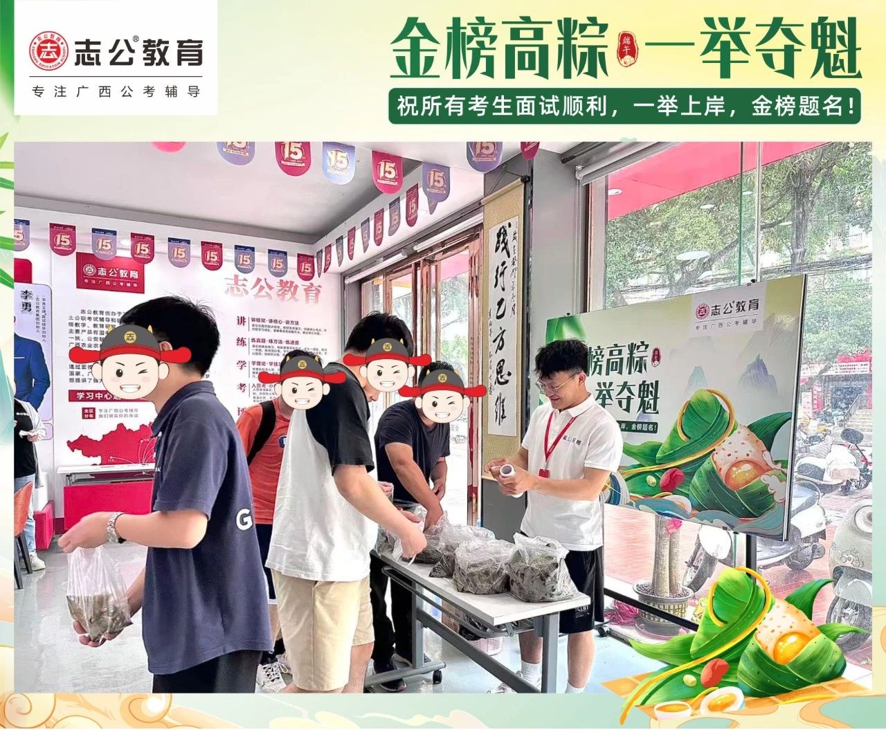 最后,再次祝愿大家端午節(jié)安康,六一兒童節(jié)快樂!愿志公教育每位員工在雙節(jié)的喜慶氛圍中,收獲滿滿,幸福常伴!也愿志公教育每位學(xué)員吃上粽子一舉高“粽”,實(shí)現(xiàn)自己的公職夢(mèng)想!
