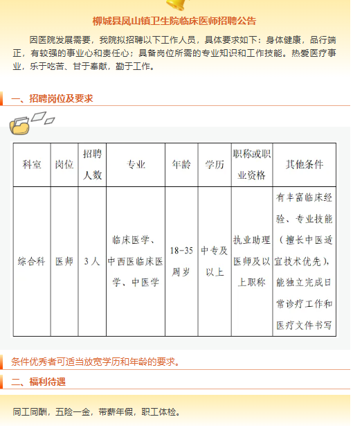 原文標(biāo)題:柳城縣鳳山鎮(zhèn)衛(wèi)生院臨床醫(yī)師招聘公告