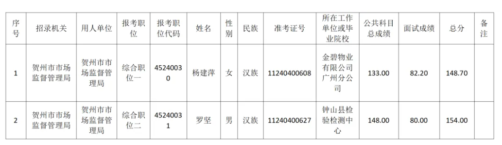 6.6 賀州市市場監(jiān)督管理局2025年度考試錄用公務(wù)員擬錄用人員名單
