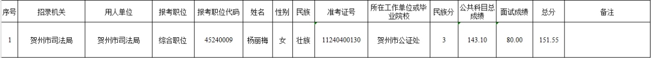6.6 賀州市司法局2025年考試錄用公務(wù)員擬錄用名單