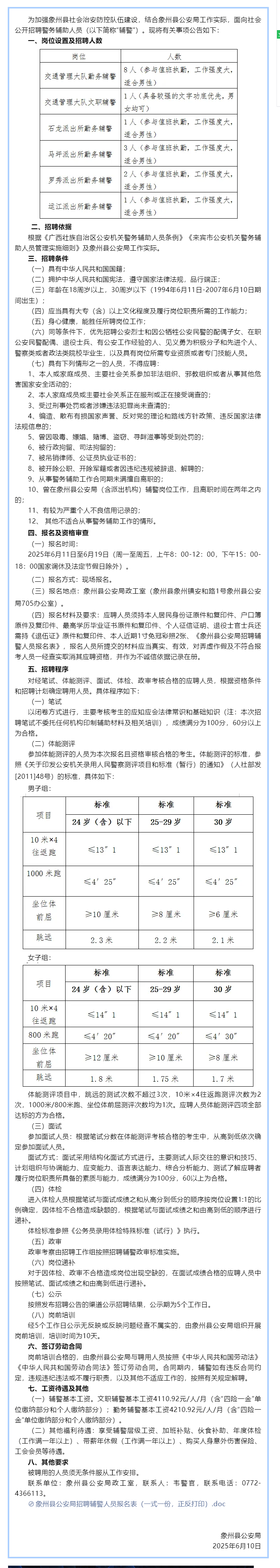 原文標(biāo)題:象州縣公安局招聘16名輔警的公告