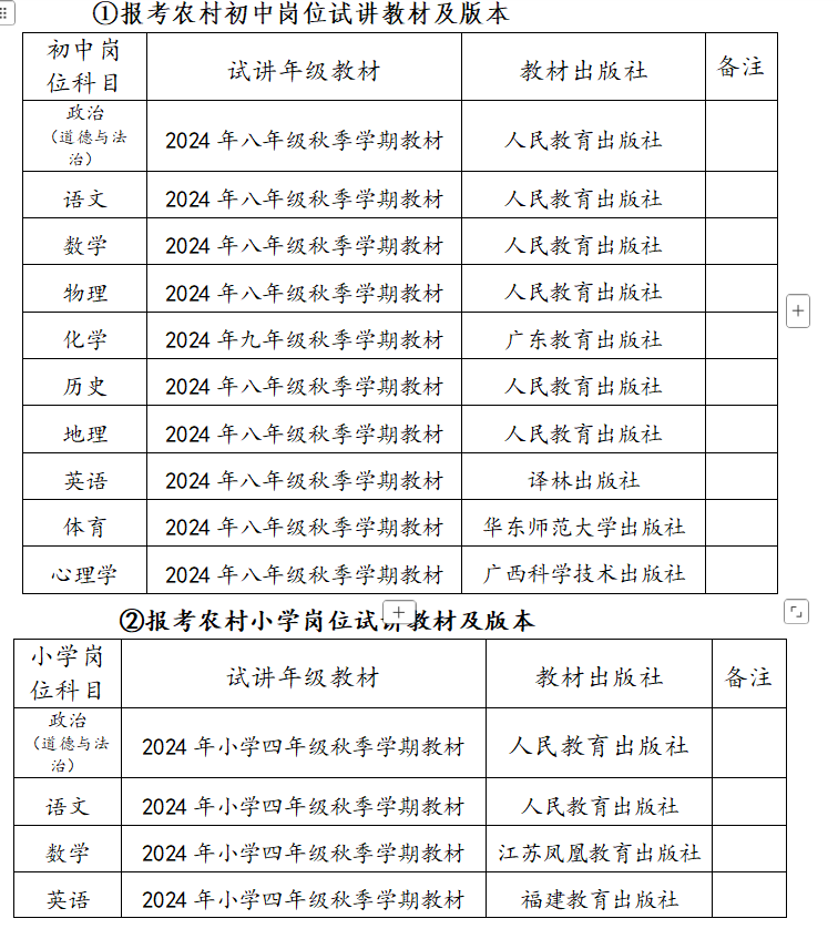 ①報考農村初中崗位試講教材及版本