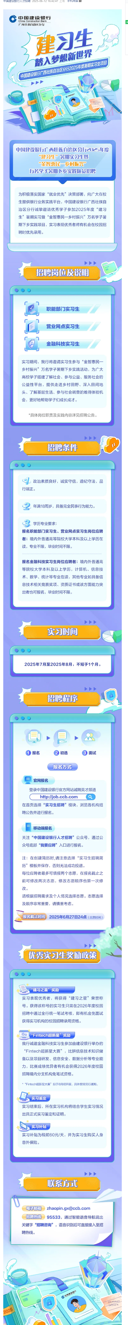 廣西 | 中國建設(shè)銀行廣西區(qū)分行2025年度暑期實習生招募