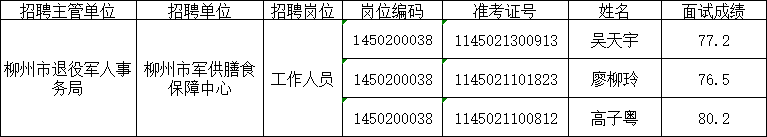 2025年柳州市事業(yè)單位公開考試招聘工作人員面試成績