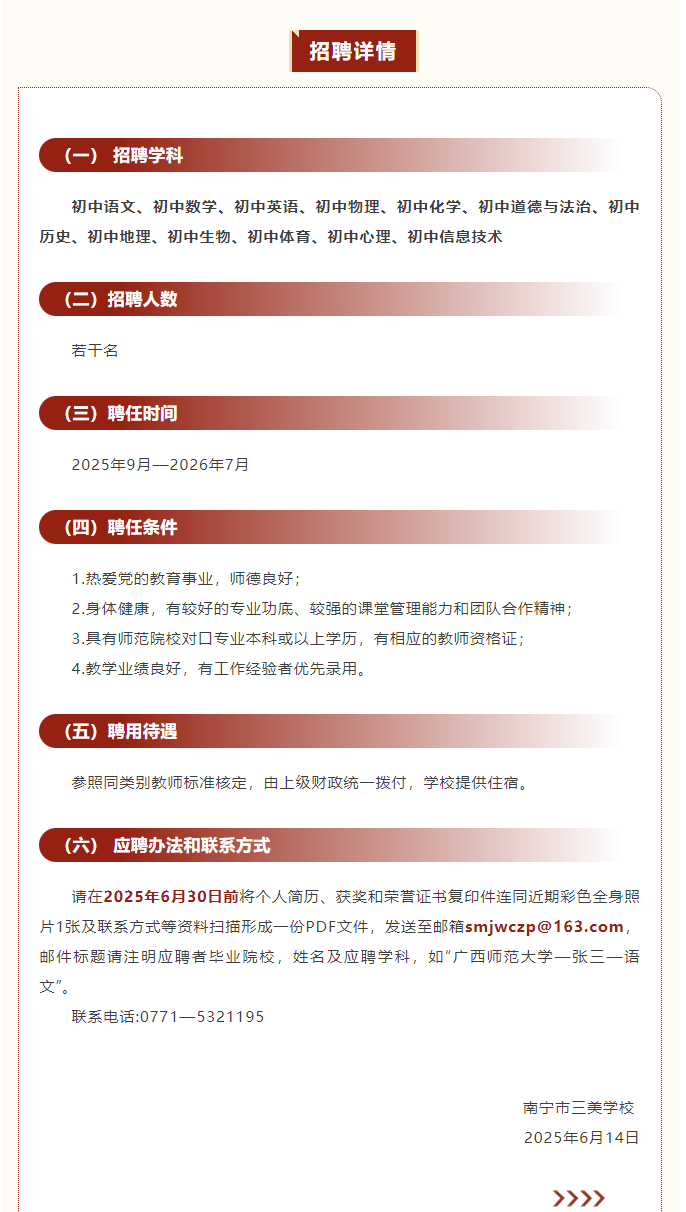 原文標題:南寧市三美學校2025-2026學年臨聘教師招聘啟事