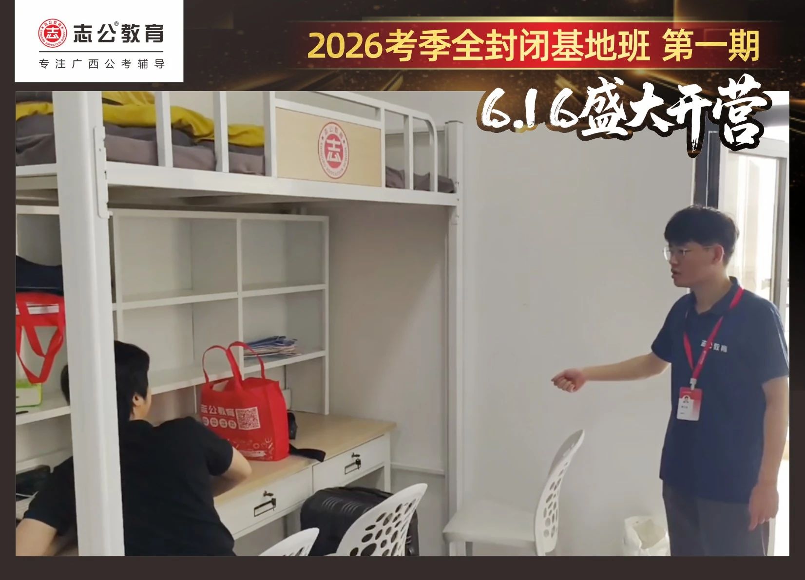 由于這段時間受臺風(fēng)影響,南寧迎來下雨天,但學(xué)員們滿懷先一步備考,快一步成功圓夢的滿滿炙熱信心,早早就在志公教育(中關(guān)村)全封閉基地前臺等候,6月16日,志公教育26考季全封閉基地班第1期的學(xué)員們齊聚一堂,正式開啟他們的公考備戰(zhàn)之旅。簽到環(huán)節(jié)作為基地班課程的第一站,不僅是對學(xué)員們的歡迎儀式,更是他們邁向夢想的第一步。