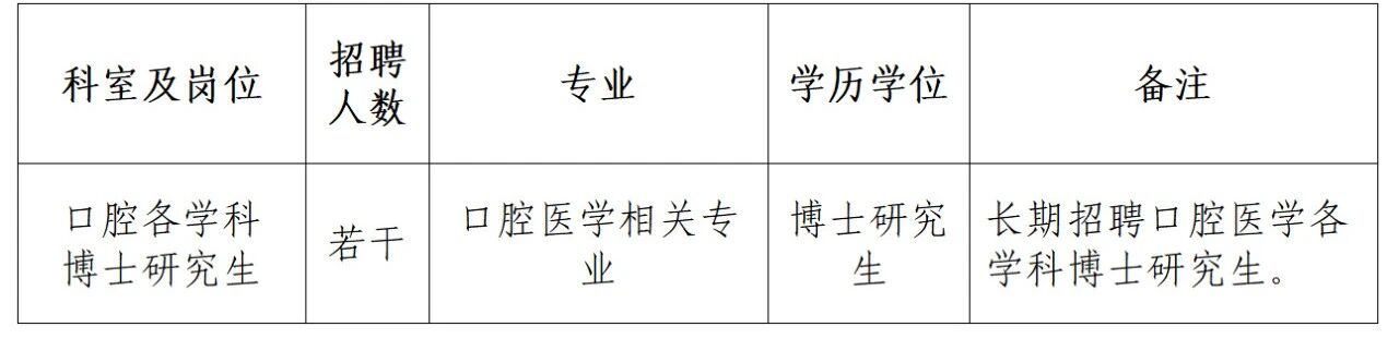人才條件:50歲以下,口腔醫(yī)學相關專業(yè)研究生畢業(yè),獲博士學位。