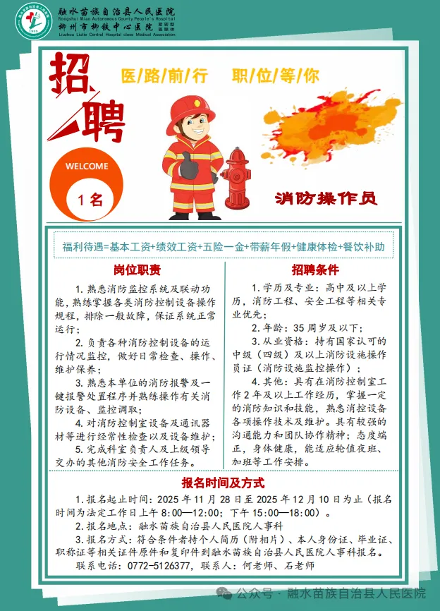 原文標題:2025年融水苗族自治縣人民醫(yī)院招聘消防操作員1名