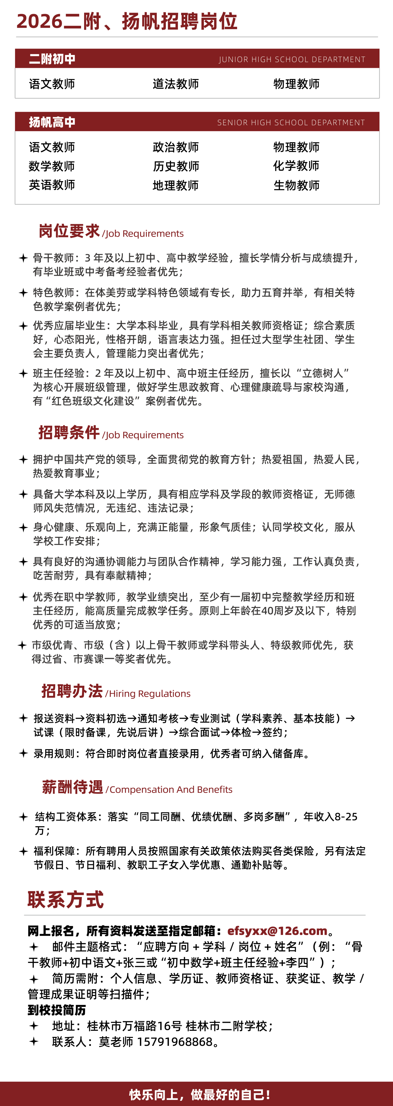 2026年桂林市二附學(xué)校、桂林市揚(yáng)帆高級中學(xué)誠聘初、高中教師