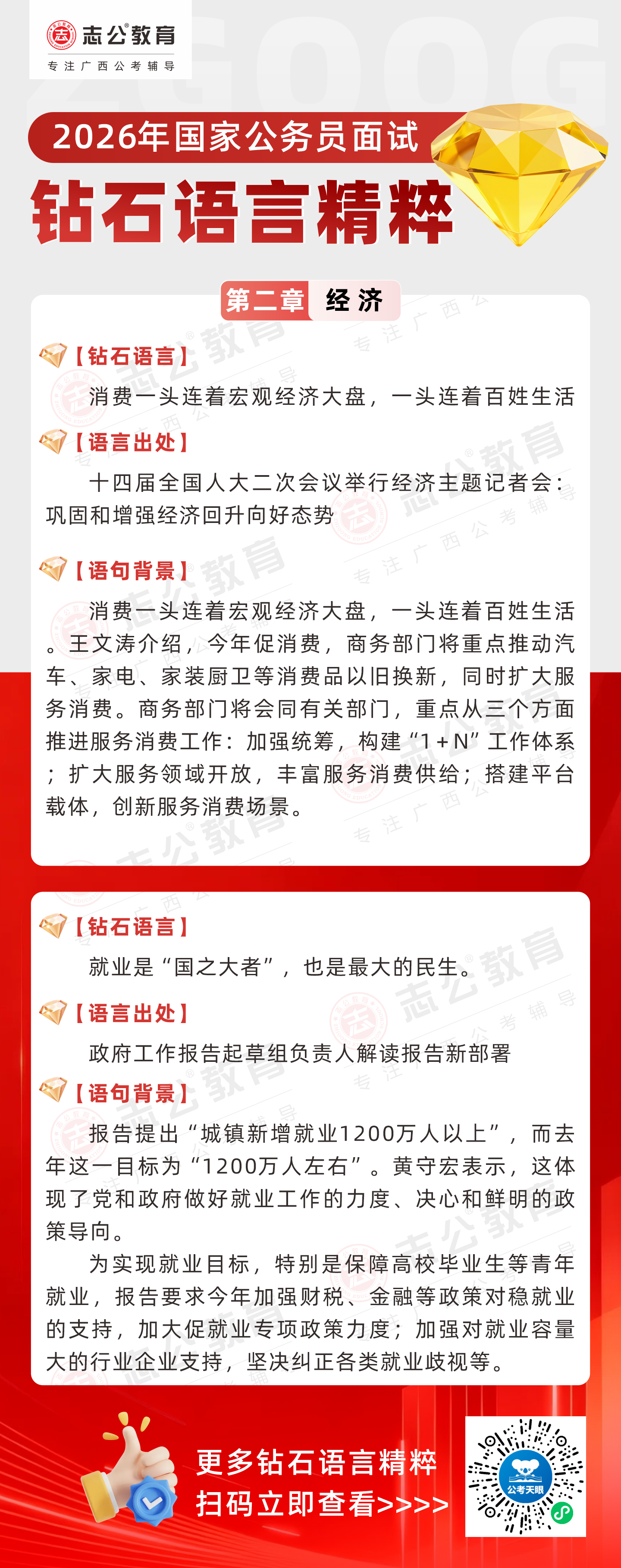 志公教育推出《2026國家公務員面試·鉆石語言精粹》經濟篇!幫助考生把握經濟類題目應答邏輯,提升語言表達層次,助你在面試中脫穎而出。備考2026國考面試,從掌握“鉆石語言”開始!